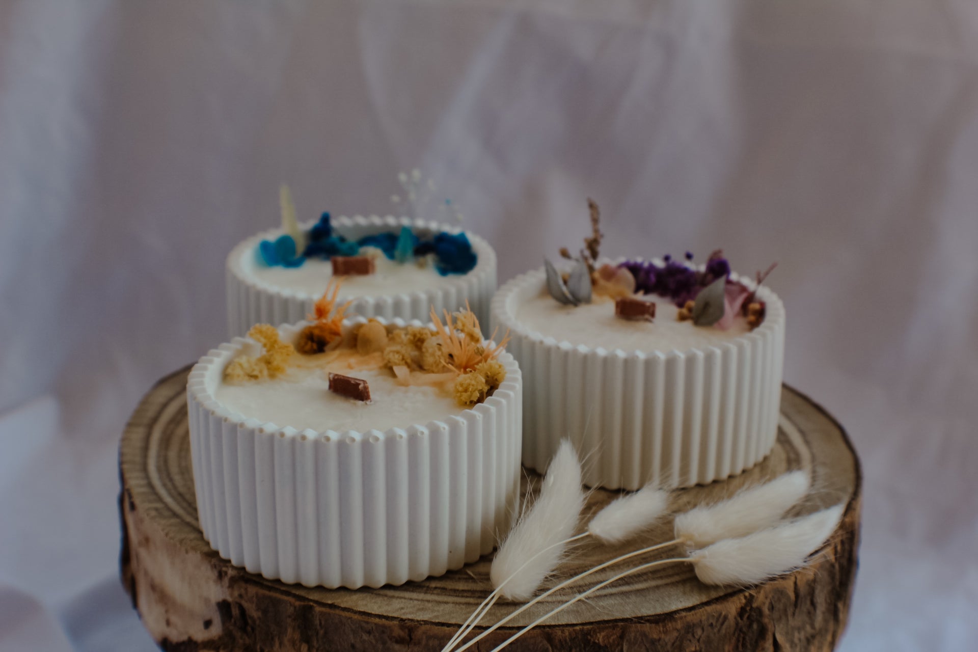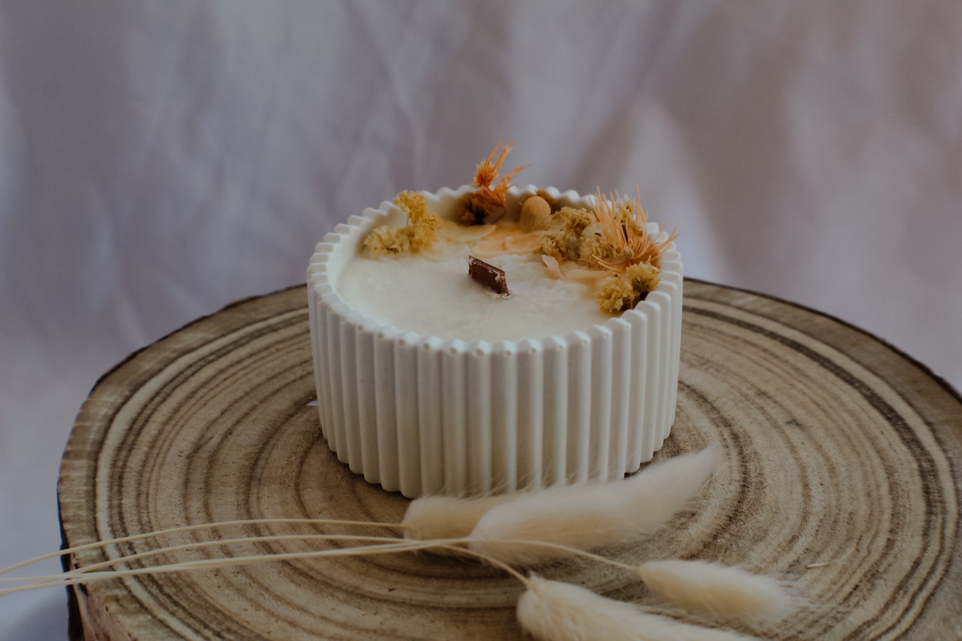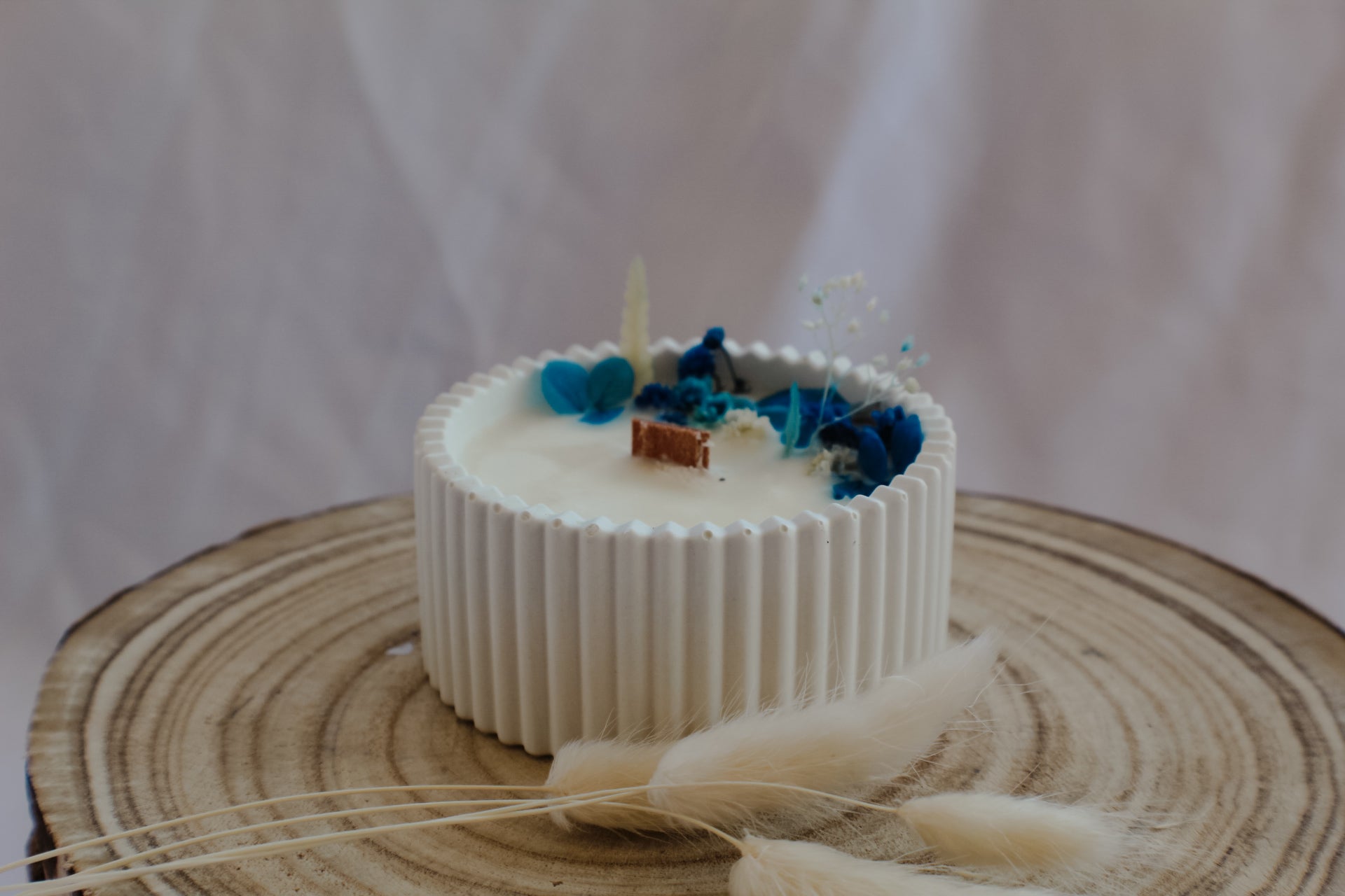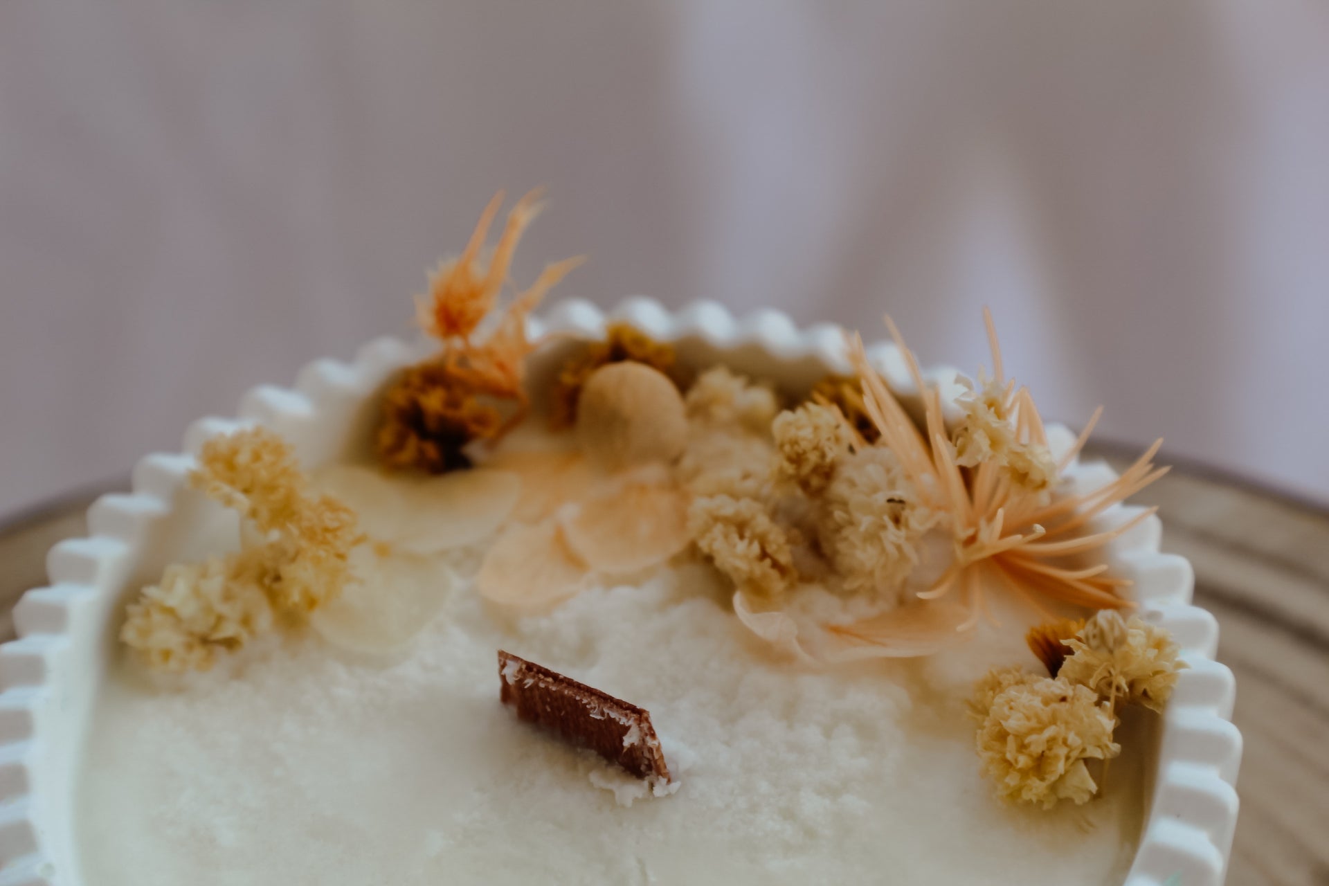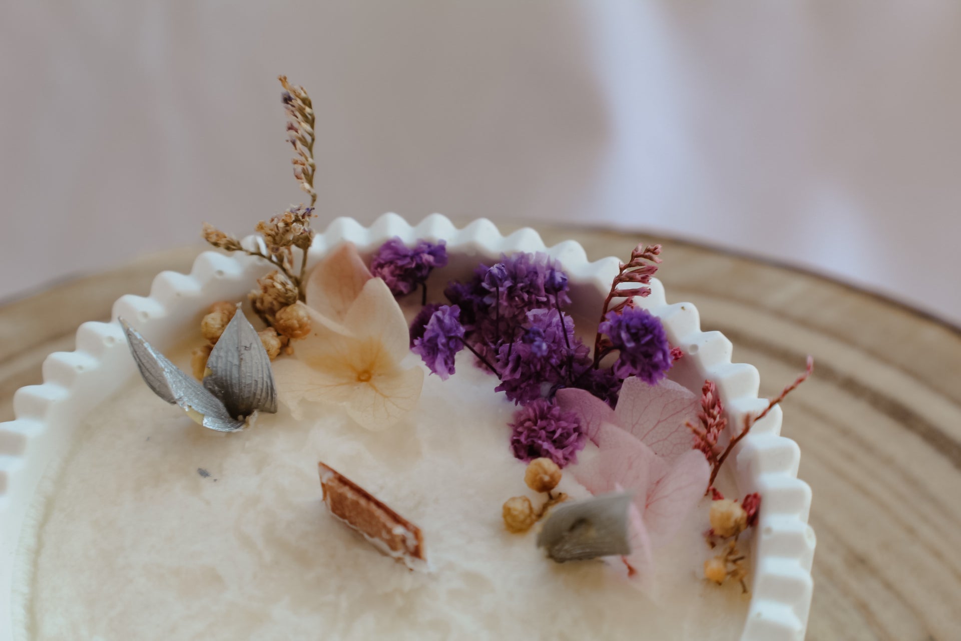 Realizzata a mano con cera di soia 100% naturale e stoppino in legno che crea una fiamma calda e scoppiettante, questa candela è arricchita da decorazioni floreali con fiorellini secchi, disponibili in diverse varianti di colore a scelta. Ogni pezzo è unico, un piccolo dettaglio di artigianalità che lascia un ricordo indimenticabile.