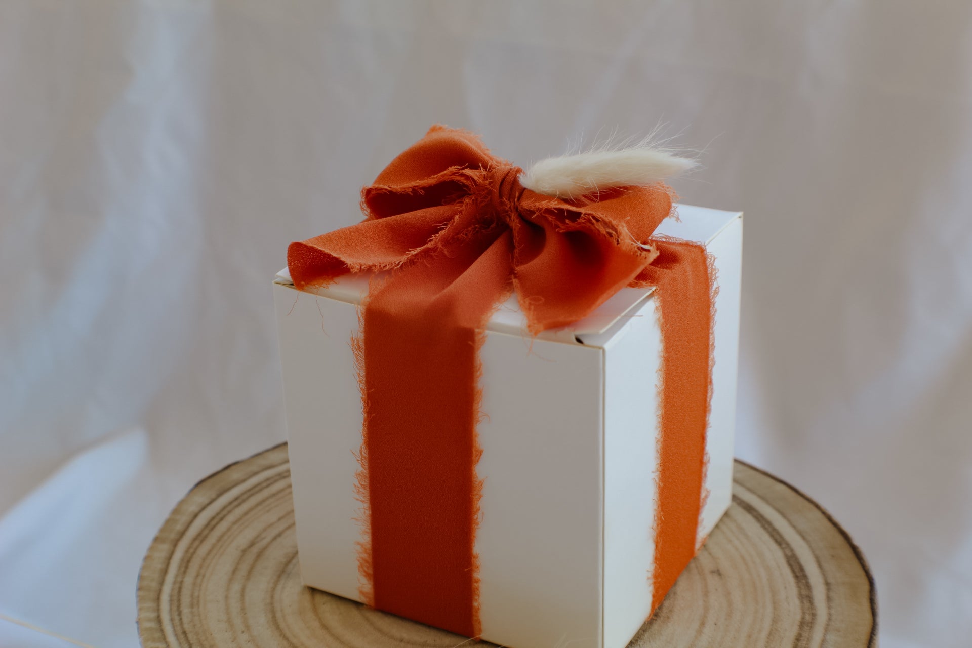 - Scatolina bianca esterna decorata con nastro in organza (colore a scelta)