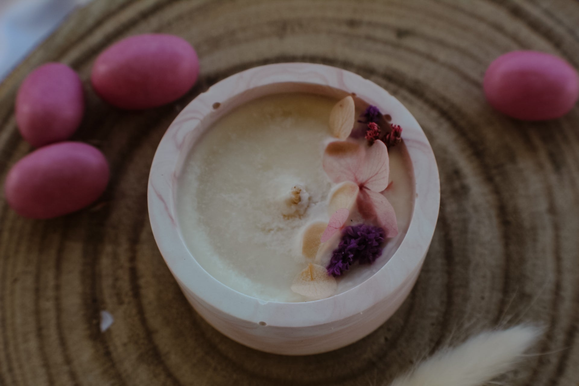 Colata a mano con cera vegetale e arricchita da delicati fiorellini secchi, è personalizzabile nella fragranza e nel colore delle decorazioni. Perfetta come ricordo prezioso di matrimoni, battesimi, comunioni e altri momenti indimenticabili.