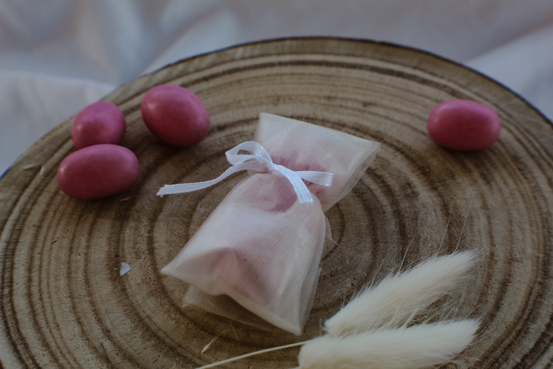 - Confetti opzionali: 3 per bomboniera, confezionati in sacchetto alimentare igienico e racchiusi nel tulle, con supplemento di €0,50