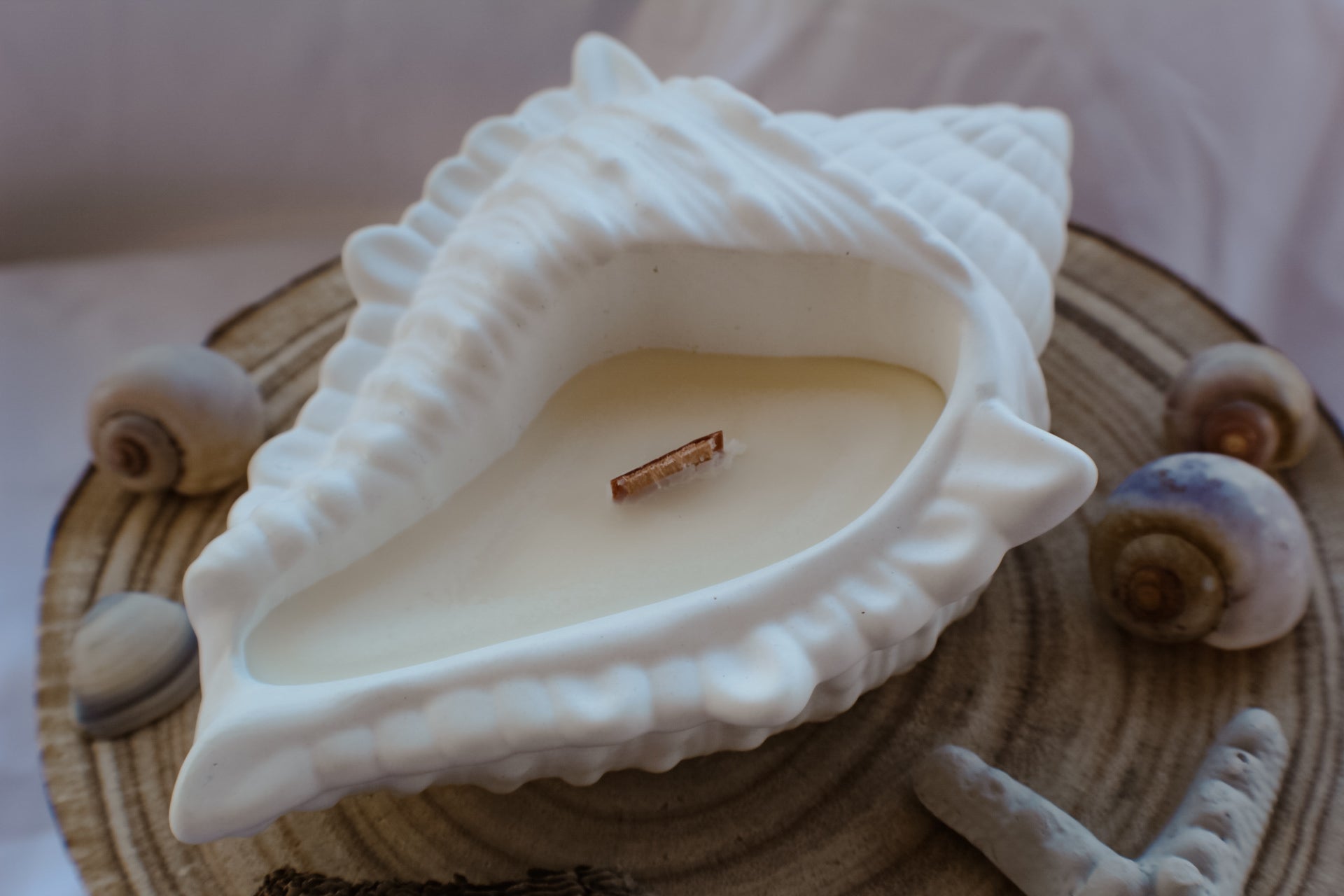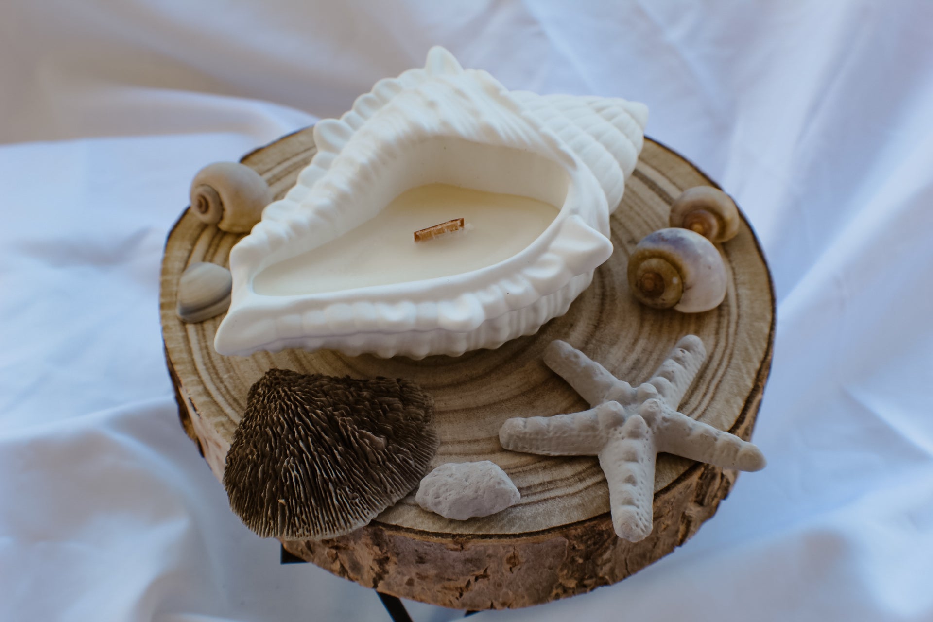Colata a mano in un vasetto artigianale a forma di conchiglia, questa candela è ispirata alle spiagge siciliane, alla sabbia dorata e ai piccoli tesori che il mare restituisce. La sua fragranza dolce e avvolgente ricrea un’atmosfera estiva, perfetta in ogni stagione.